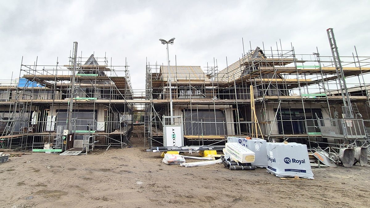 Naast de logistieke beperkingen en de regelgeving, speelt ook het bouwproces zelf een rol. “Door de grote variatie in bouwmethodes moeten we constant scherp blijven”, vertelt Jeroen. “Sommige woningen hebben HSB-wanden en staalconstructies, terwijl anderen volledig uit kalkzandsteen en breedplaatvloeren bestaan. Er zijn woningen met dakterrassen, grote balkons en wisselende metselpatronen. Geen dag is hetzelfde!”