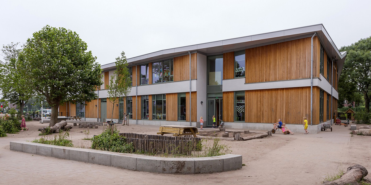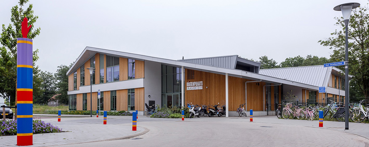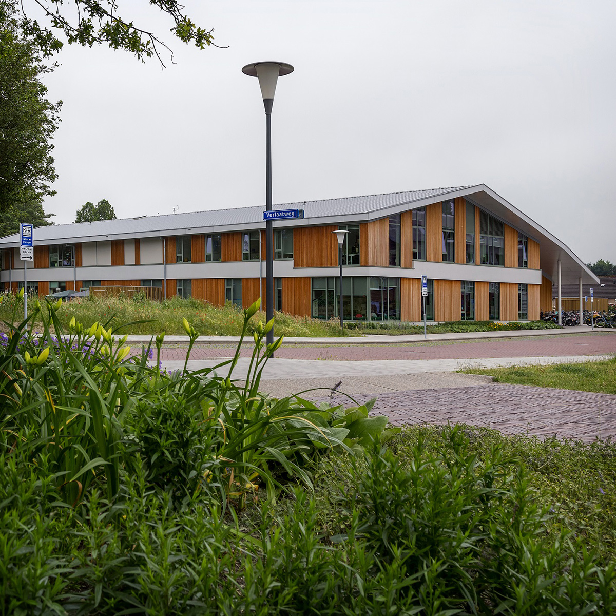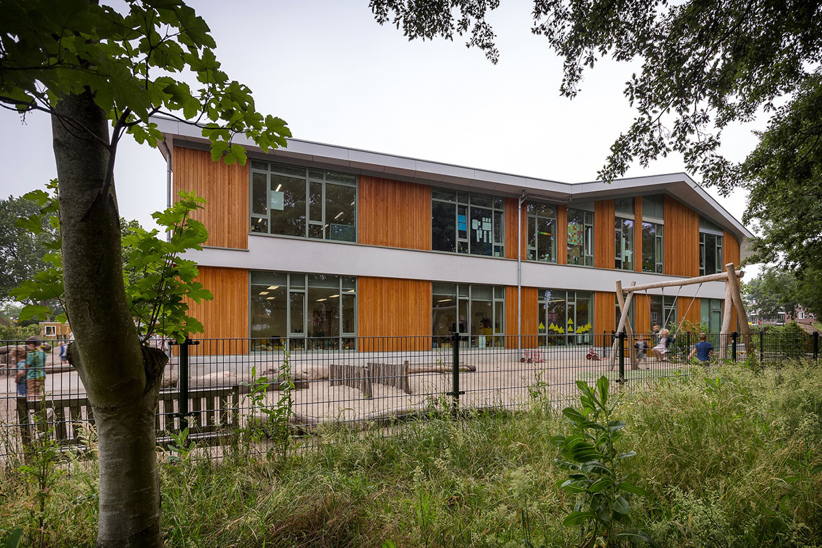 Het ontwerp van de school kenmerkt zich door een bijzonder dak met overstekken dat aansluit op het dorpsachtige karakter van de omgeving. Binnen voelt het gebouw aan als een gezamenlijk huis waar school, kinderopvang, bibliotheek en het Centrum voor Jeugd en Gezin elkaar ontmoeten. De brede school ligt op een prachtige groen plek aan de Stompwijksevaart in Zoeterwoude.