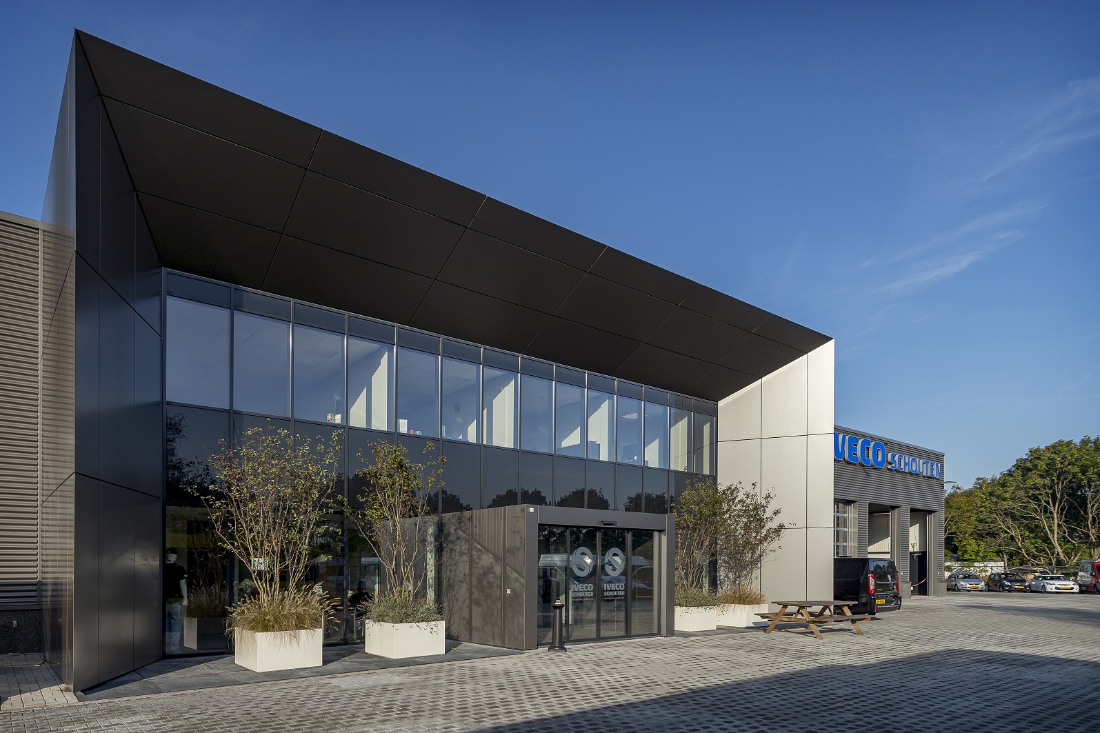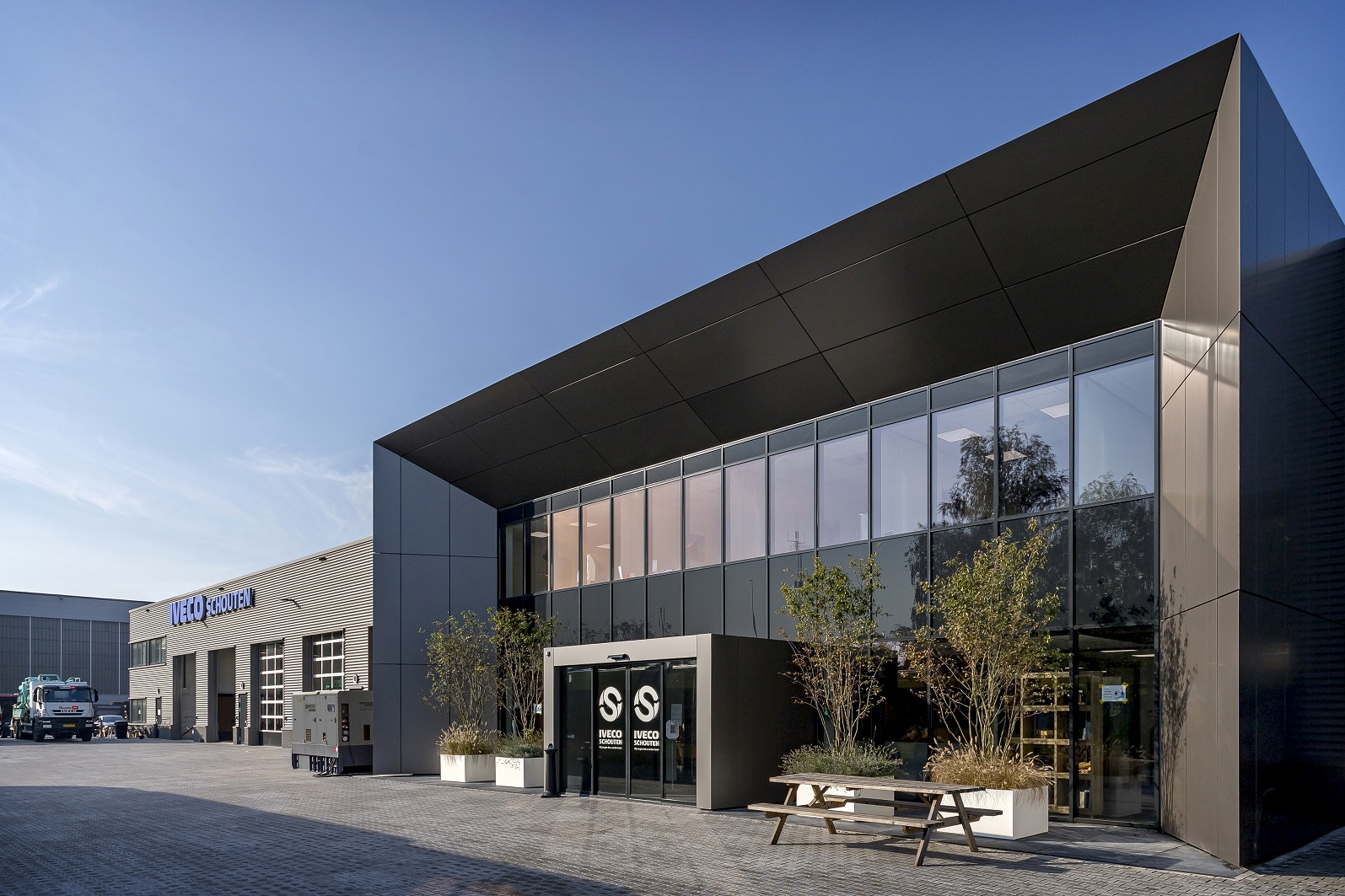 In Alblasserdam, op het voormalig terrein van FN Steel, realiseerden wij het nieuwe duurzame bedrijfspand voor garagebedrijf IVECO Schouten. Op dit terrein lagen diverse soorten sloopmaterialen, deze zijn gesorteerd en vergruisd en als ondergrond gebruikt voor het pand en de verharding onder het straatwerk. Van de totale hoeveelheid afvalmaterialen op het terrein is bijna niets afgevoerd, wat transporthandelingen minimaliseert en ten goede komt voor het milieu.