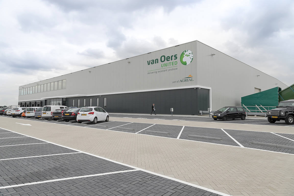 Van Oers United is leverancier en producent van jaarrond verse groenten en al decennia actief op de Europese markt en daarbuiten. De nieuwbouw in Dinteloord bestaat uit een distributiegebouw van 11.000 m2, een fustopslag van 1.350 m2 en een kantoor van 1.300 m2.