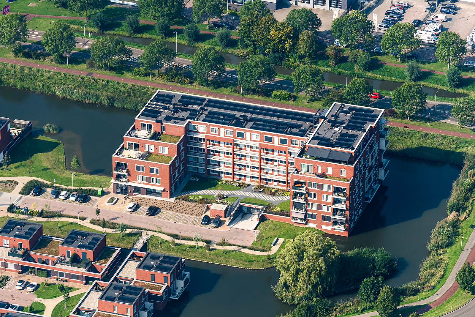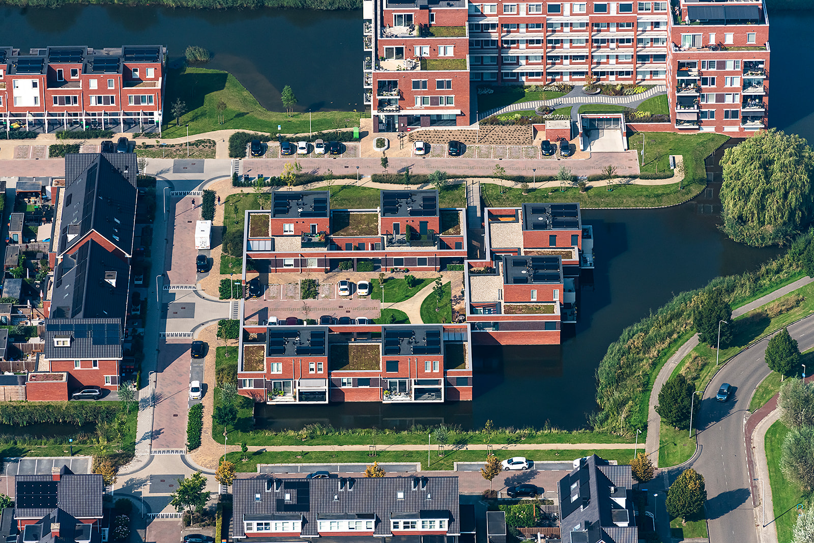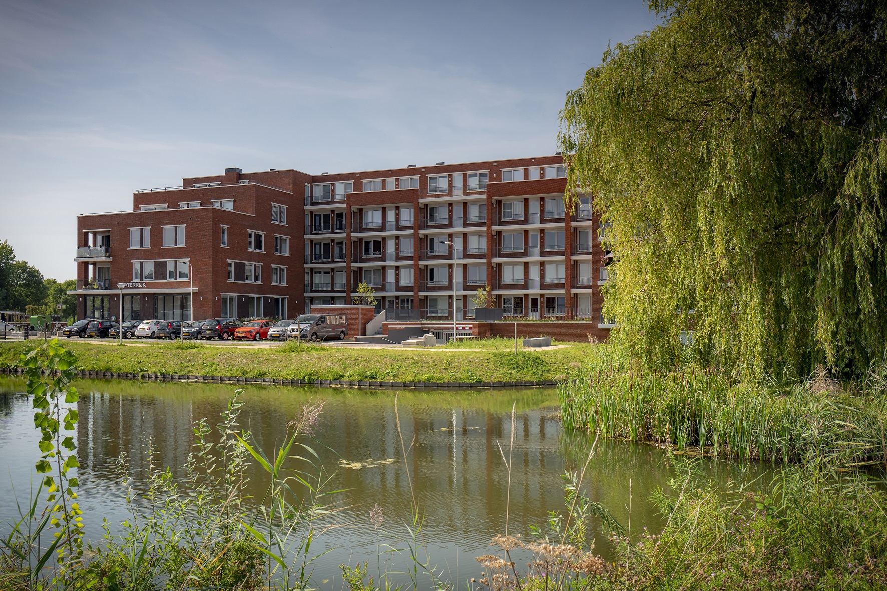 Het woningaanbod in Waterrijk bestaat uit: appartementen, patiowoningen, eengezinswoningen, luxe eengezinswoningen en twee-onder-een-kapwoningen. Qua uitstraling sluiten de woningen – gelegen aan de binnenzijde van het plan – aan op de jaren ’30 architectuur van de reeds bestaande woningen in Het Zand. De buitenzijde van het plan wordt omsloten door woningen en appartementen met een eigentijdse en moderne uitstraling, die door kleur en materiaalkeuze een duidelijke eenheid vormen met de rest van de wijk.